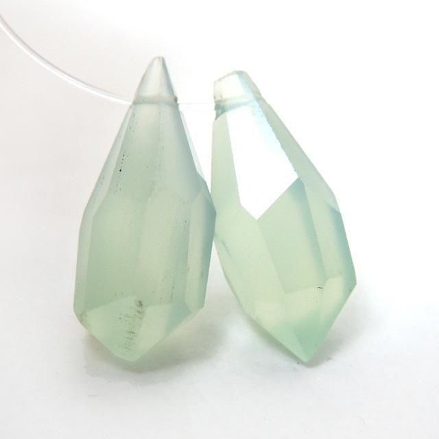 シーブルーカルセドニー  ラフドロップカット 2粒売り  ※画像をクリックすると拡大します