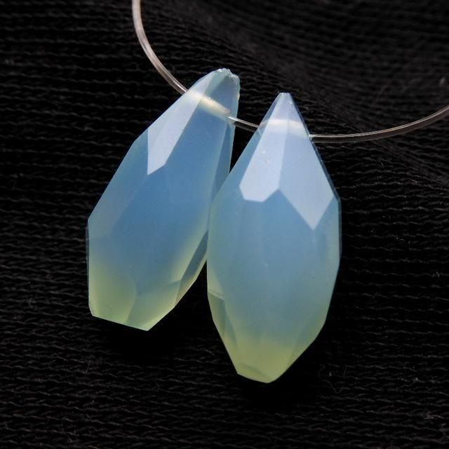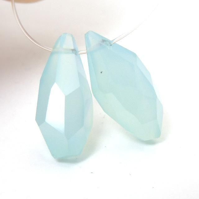シーブルーカルセドニー  ラフドロップカット 2粒売り  ※画像をクリックすると拡大します