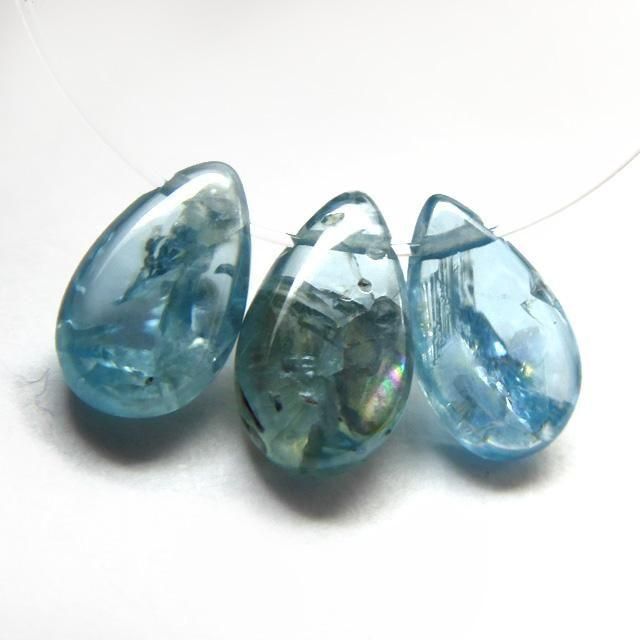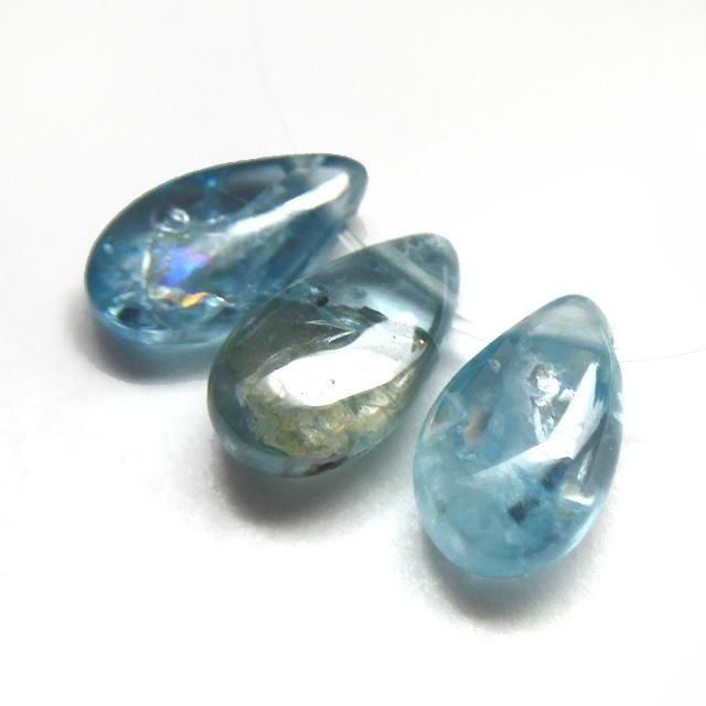 ブルージルコン 平ドロップ (ペアシェイプ) 3粒売り