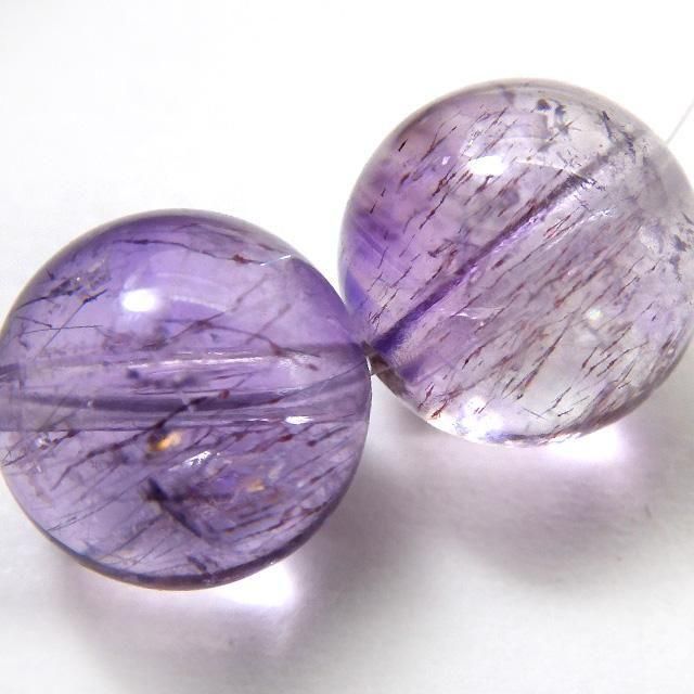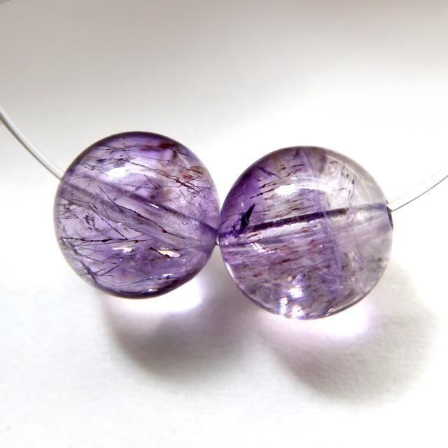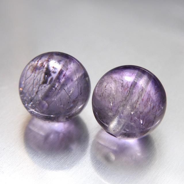 アメジストエレスチャルクォーツ 9.1mm丸珠 2粒売り