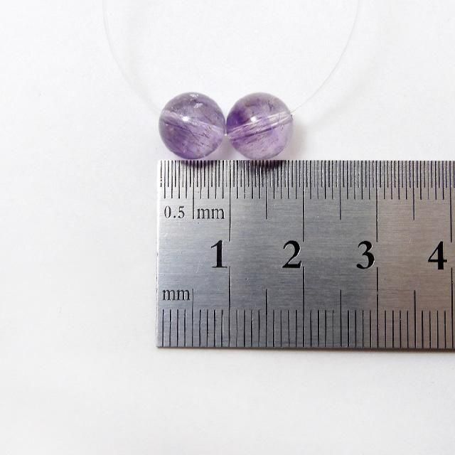 アメジストエレスチャルクォーツ 9.1mm丸珠 2粒売り  ※画像をクリックすると拡大します