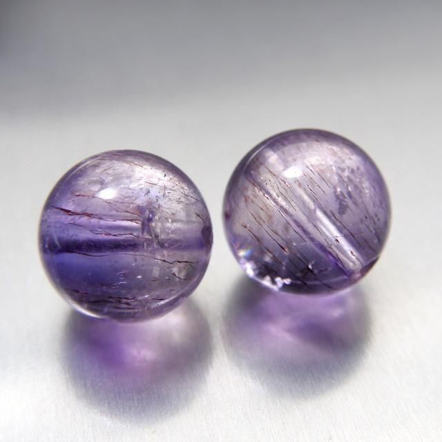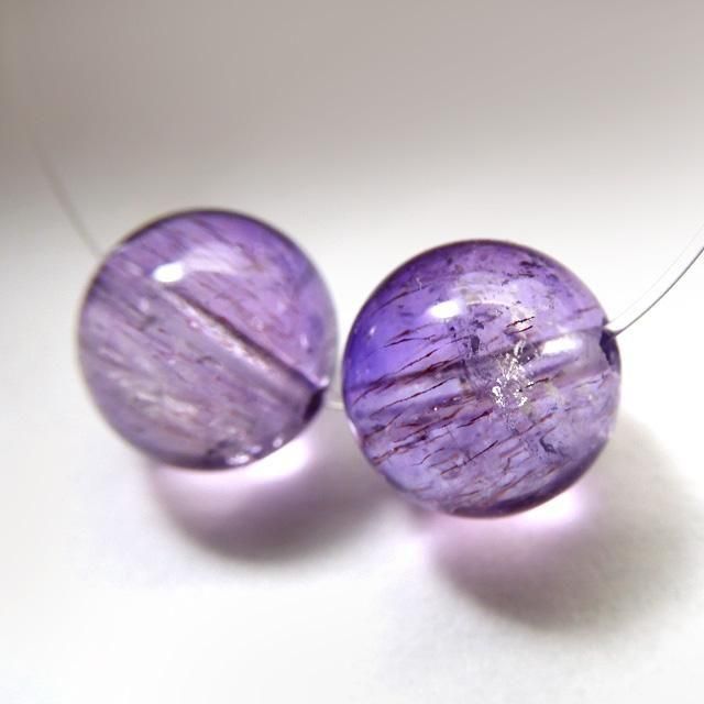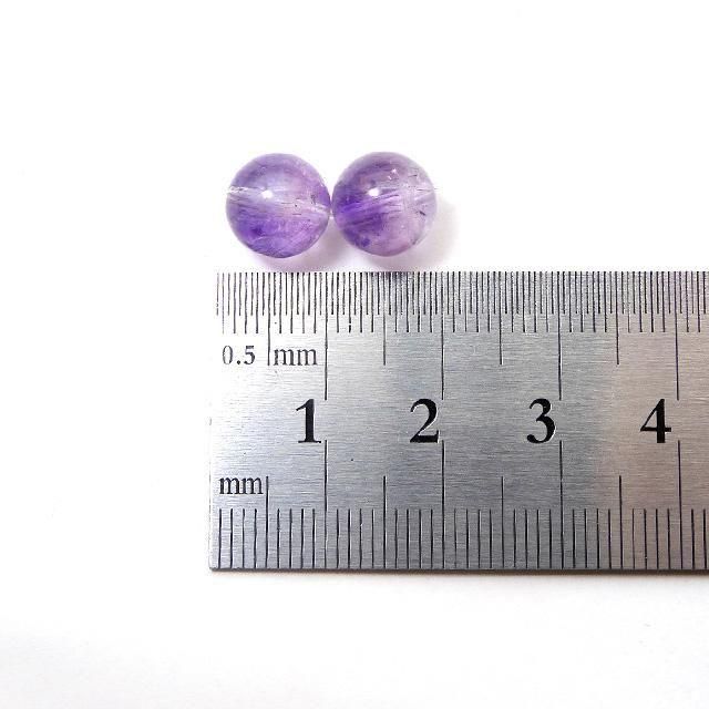アメジストエレスチャルクォーツ 9mm丸珠 2粒売り