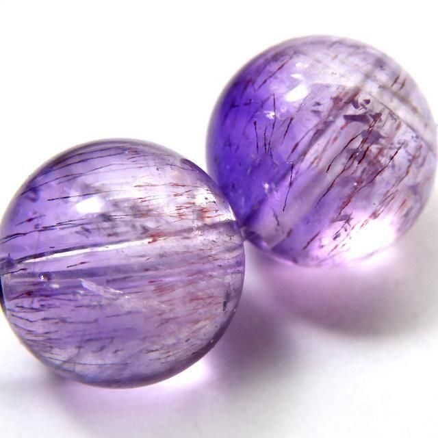 アメジストエレスチャルクォーツ 9mm丸珠 2粒売り  ※画像をクリックすると拡大します