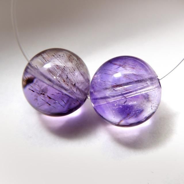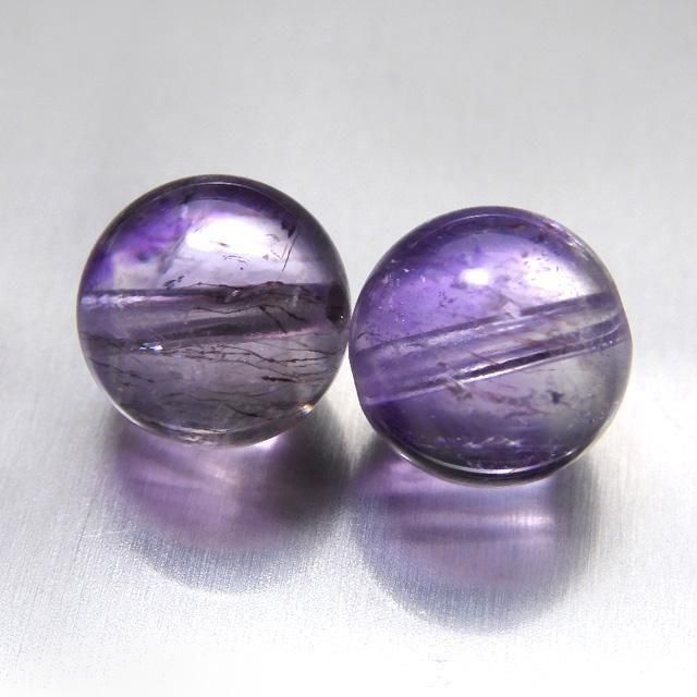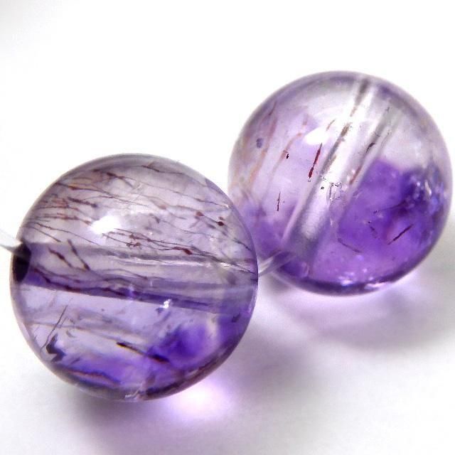 アメジストエレスチャルクォーツ 9mm丸珠 2粒売り