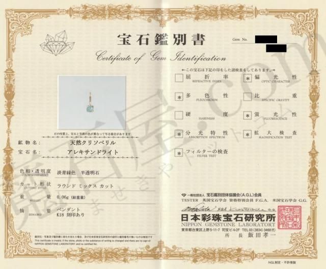 【アクセサリー】 アレキサンドライト ペンダントトップ K18(鑑別書付)