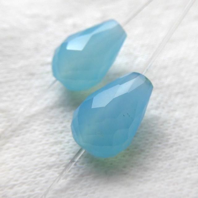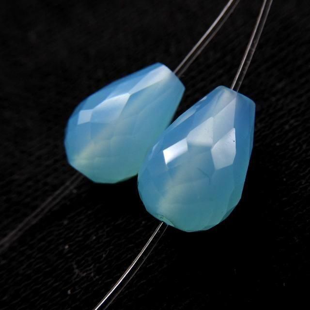 シーブルーカルセドニー 縦穴ドロップカット 2粒売り