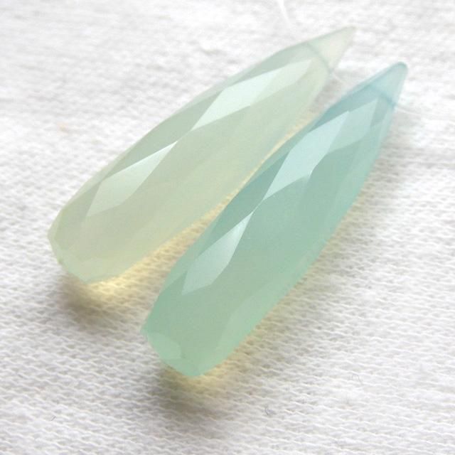 シーブルーカルセドニー ロングドロップカット 2粒売り
