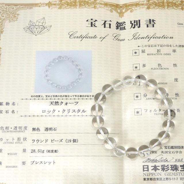 【アクセサリー】 水晶 10mm丸珠ブレスレット (鑑別書付)